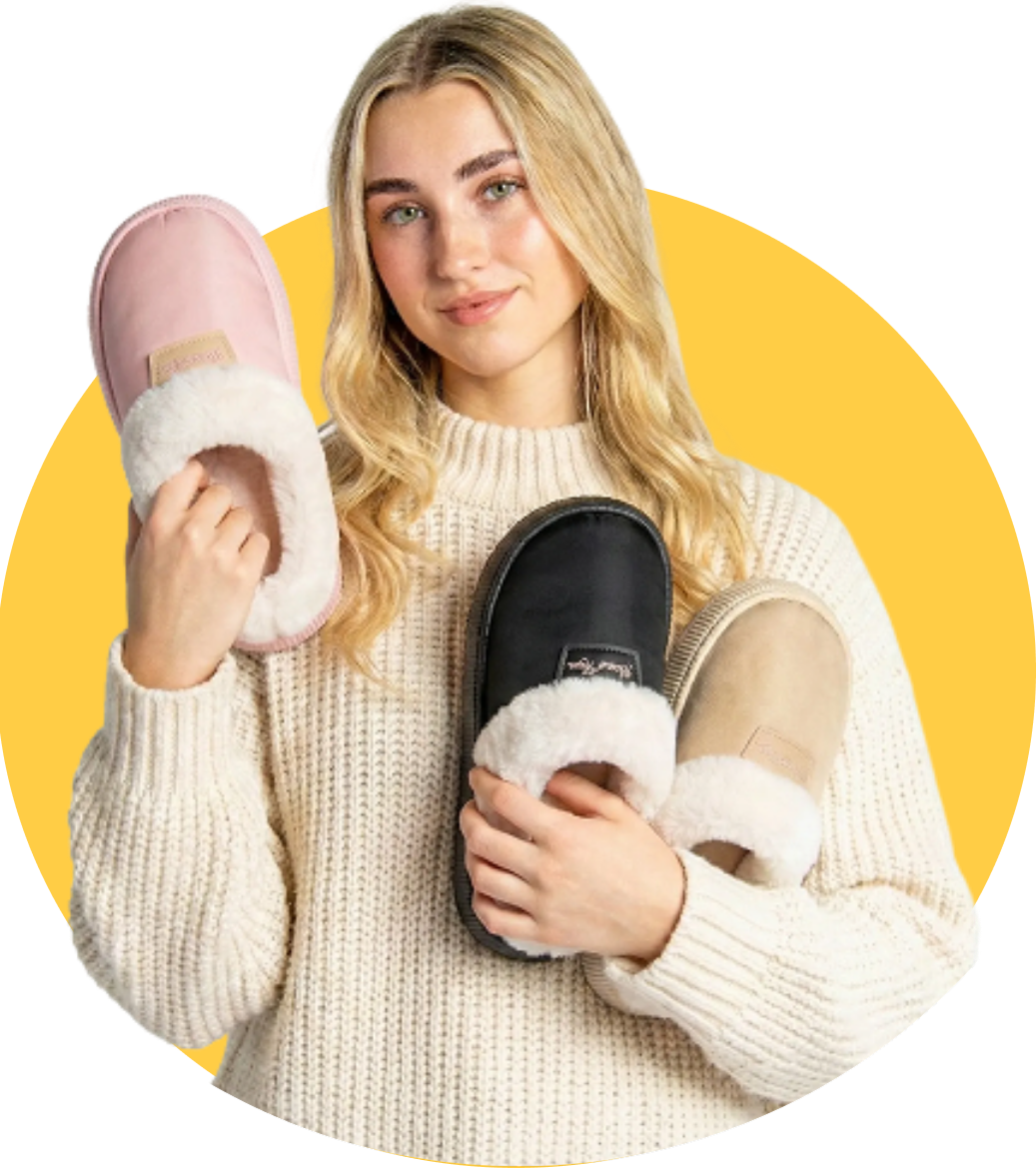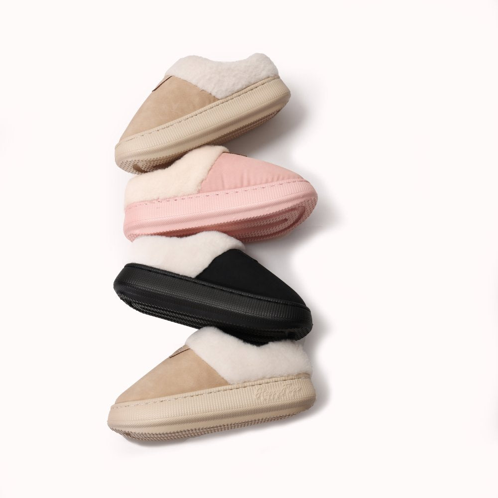 HappyComfy is gemaakt van veganistische pluche bont en duurzaam EVA-materiaal, die warmte en ondersteunend comfort voor je voeten combineren.