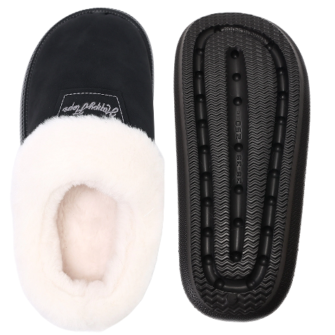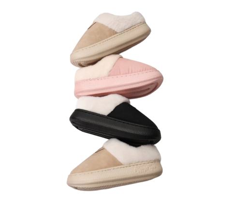 HappyComfy is gemaakt van veganistische pluche bont en duurzaam EVA-materiaal, die warmte en ondersteunend comfort voor je voeten combineren.